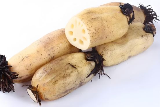 民间传说,铁拐李、何仙姑等八仙下凡游历,在江南一带遇见恶蛟龙;八仙合力将蛟龙制服,并留下了八件法器,幻化成了“水八仙”,水八仙是江浙地区的传统食物,又称水八鲜,包括茭白、莲藕、水芹、芡实(鸡头米)、茨菰(慈菇)、荸荠、莼菜、菱八种水生植物的可食部分。追溯历史,《诗经》中的“彼泽之陂,有蒲与荷”或许是对莲藕最早的文字记载。莲藕的肉质部分呈现出淡黄色或白色,口感脆嫩爽口,具有很高的营养价值。